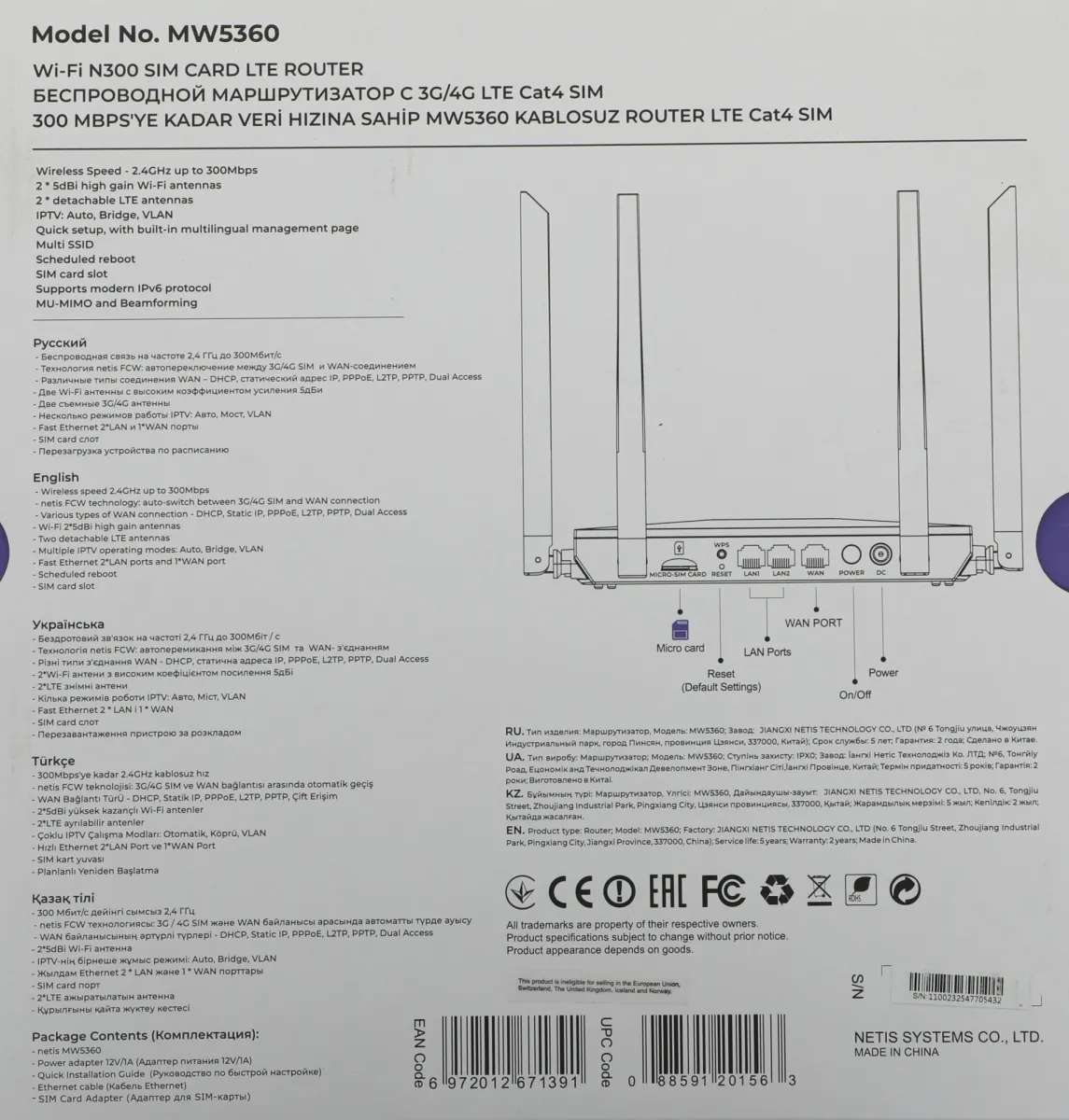 Роутер MW5360. Адаптер питания 12В/1А. Инструкция по быстрой настройке (многоязыковая). -