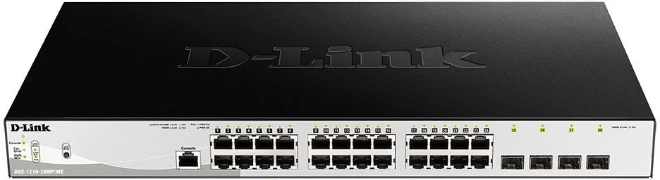 Коммутатор D-Link DGS-1210-28MP/ME DGS-1210-28MP/ME/B (L2) 24x1Гбит/с 4xКомбо(1000BASE-T/SFP) 4SFP (DGS-1210-28MP/ME/B)