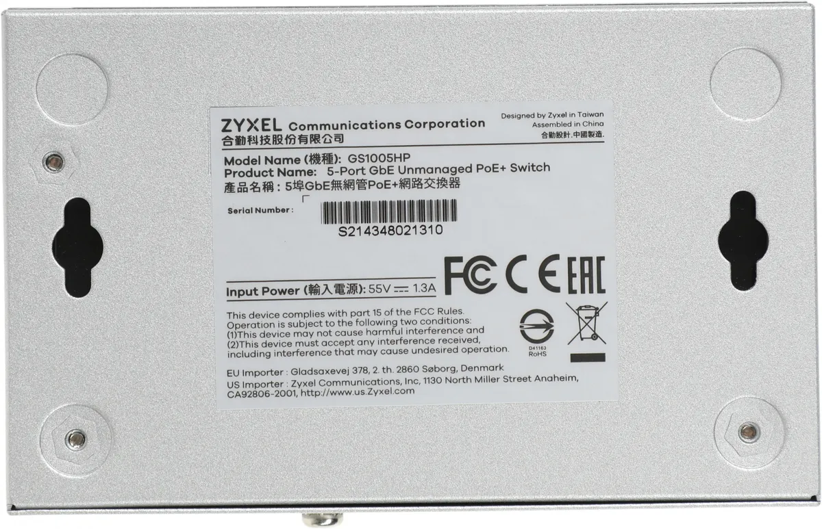 Коммутатор Zyxel GS1005HP-EU0101F (L2) 5x1Гбит/с 4PoE+ 60W неуправляемый (GS1005HP-EU0101F)