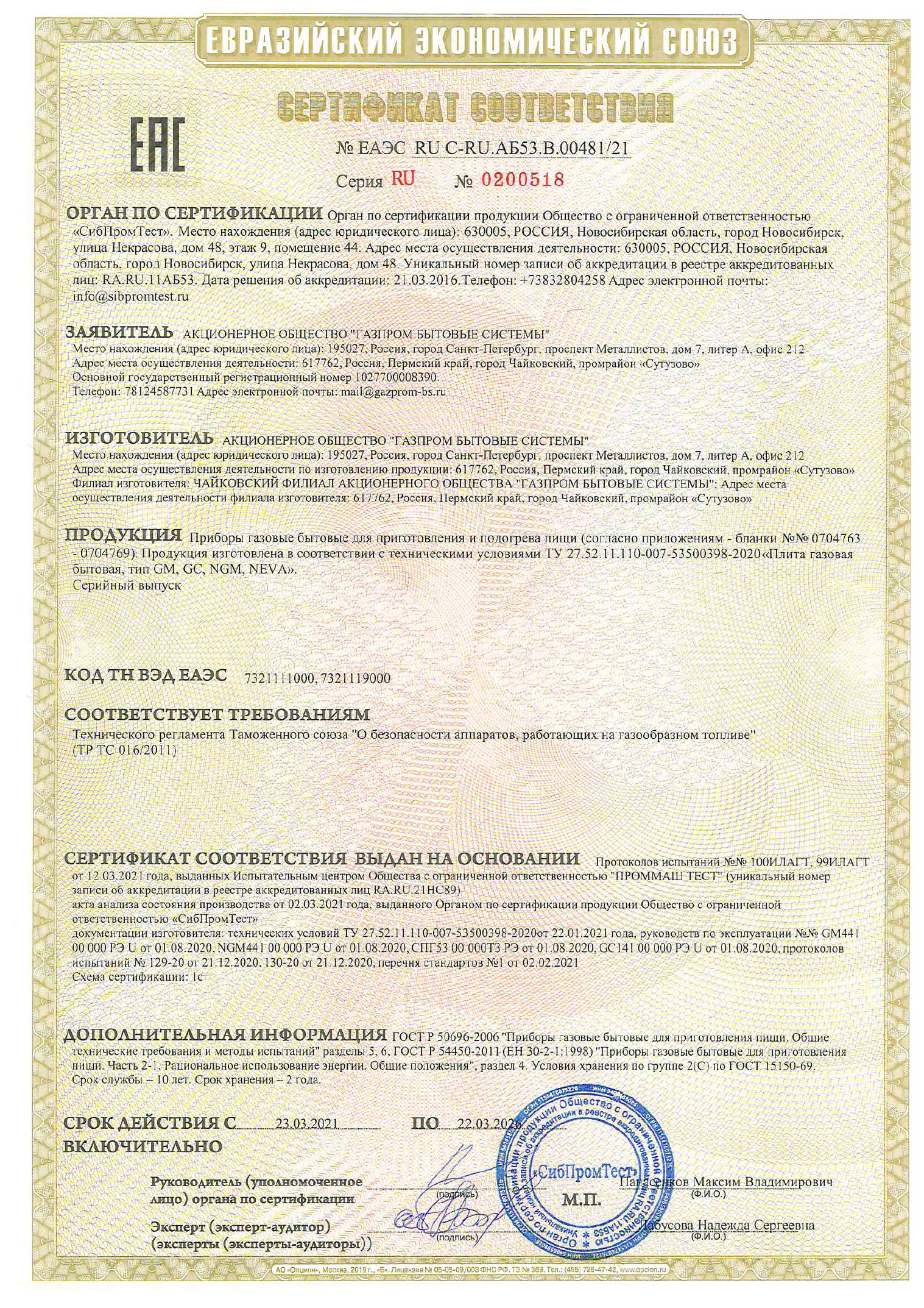 ЕАЭС RU С-RU.АБ53.В.00481/21 | 22.03.2021 | 21.03.2026 |
