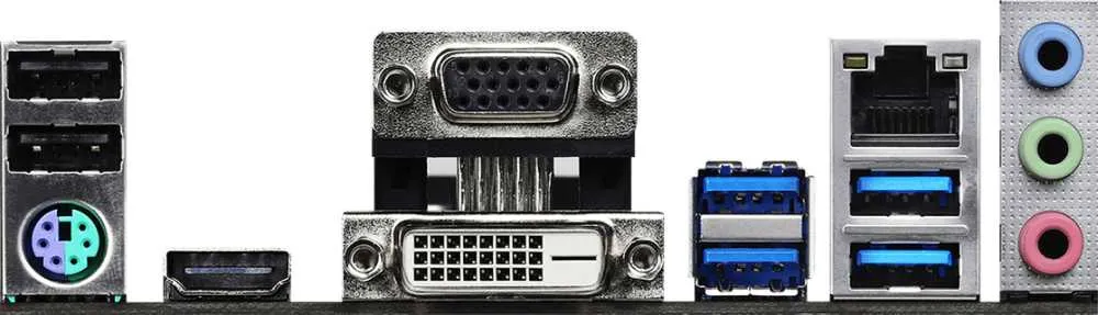 PS/2 (клавиатура/мышь), D-Sub, DVI-D, HDMI, RJ-45, наушники/микрофон -