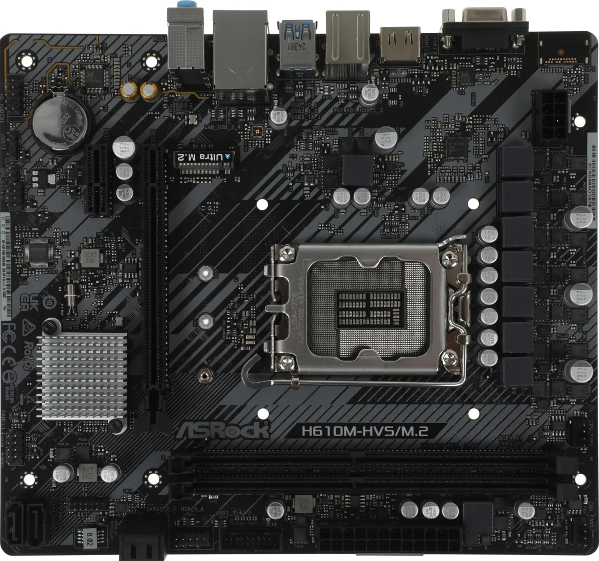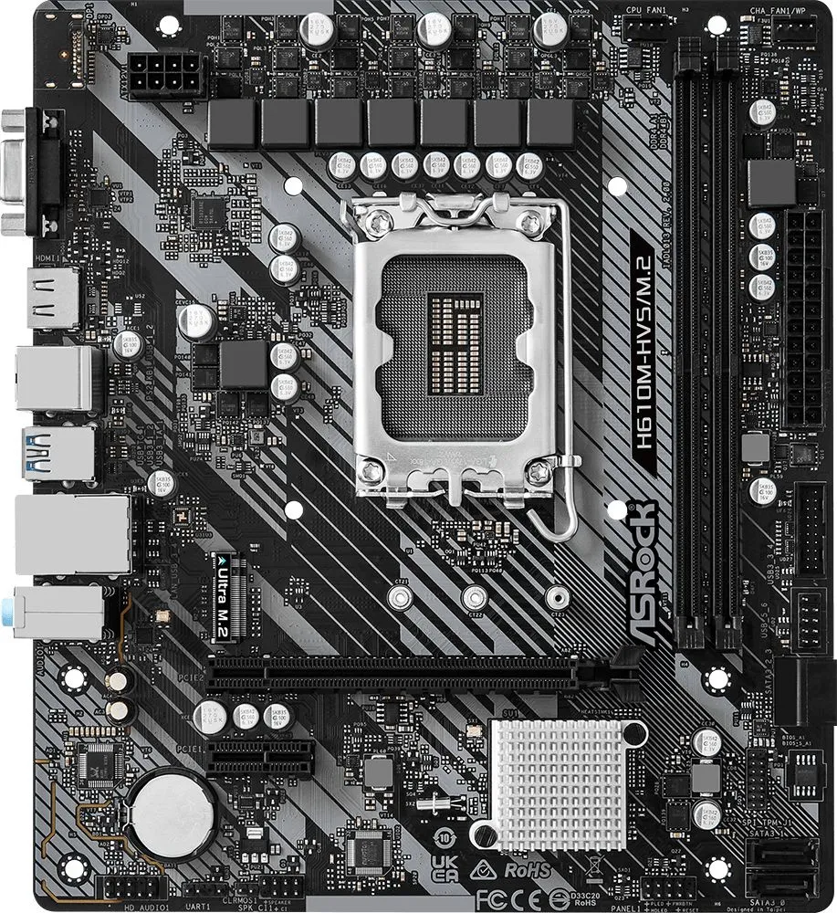 Материнская плата ASROCK H610M-HVS/M.2 R2.0, LGA1700, H610, 2*DDR4, (H610M-HVS/M.2 R2.0)