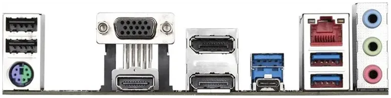 2xUSB 2.0/1.1, PS/2, D-Sub, HDMI, 2xDisplayPort, 3xUSB 3.2 Gen 1, USB Type-C, LAN RJ-45 -