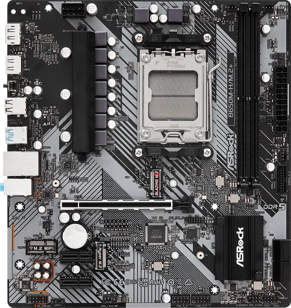Материнская плата ASROCK B650M-H/M.2+, AM5, B650, 2*DDR5, HDMI+DP, 4xSATA3 6.0, M.2 Socket, (B650M-H/M.2+)