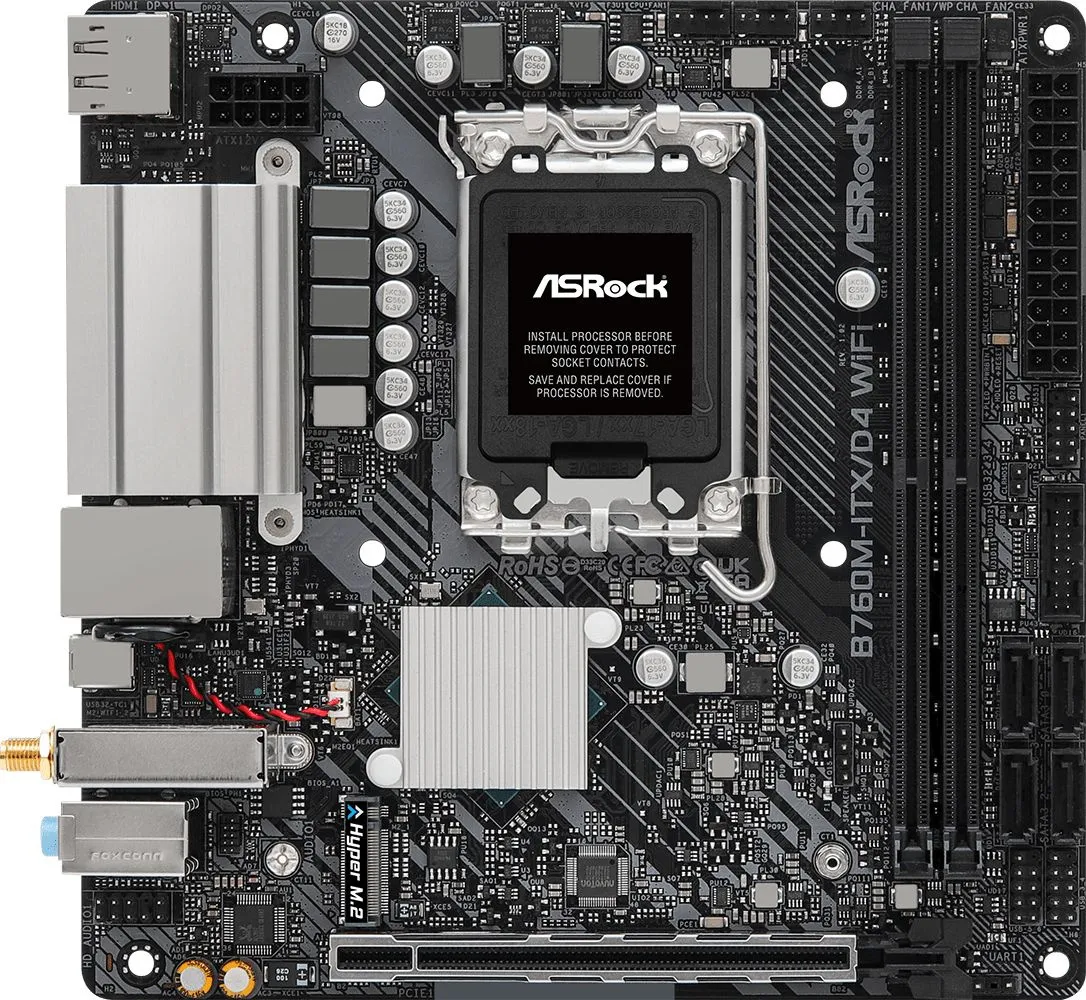 Материнская плата ASROCK B760M-ITX/D4 WIFI, LGA1700, B760, 2*DDR4, HDMI+DP, 4xSATA3 6.0 (RAID), (B760M-ITX/D4 WIFI)