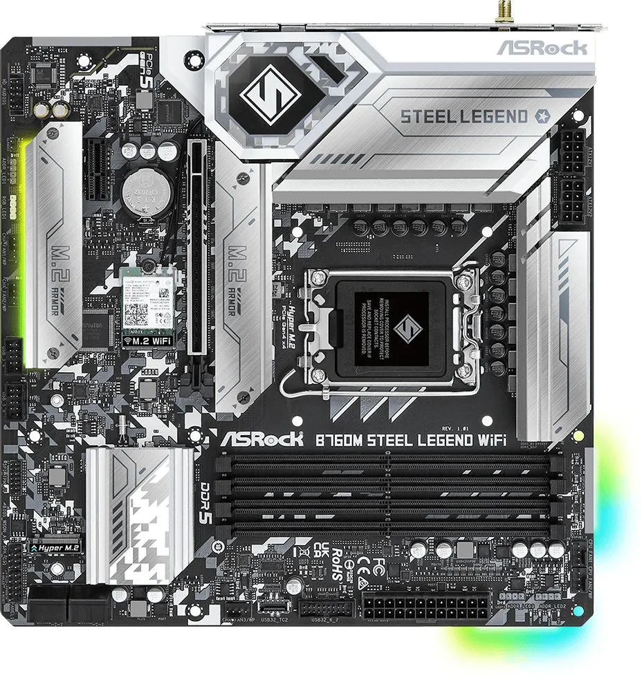 Материнская плата ASROCK B760M STEEL LEGEND WIFI, LGA1700, B760, 4*DDR5, HDMI+DP, 4xSATA3 (B760M STEEL LEGEND WIFI)