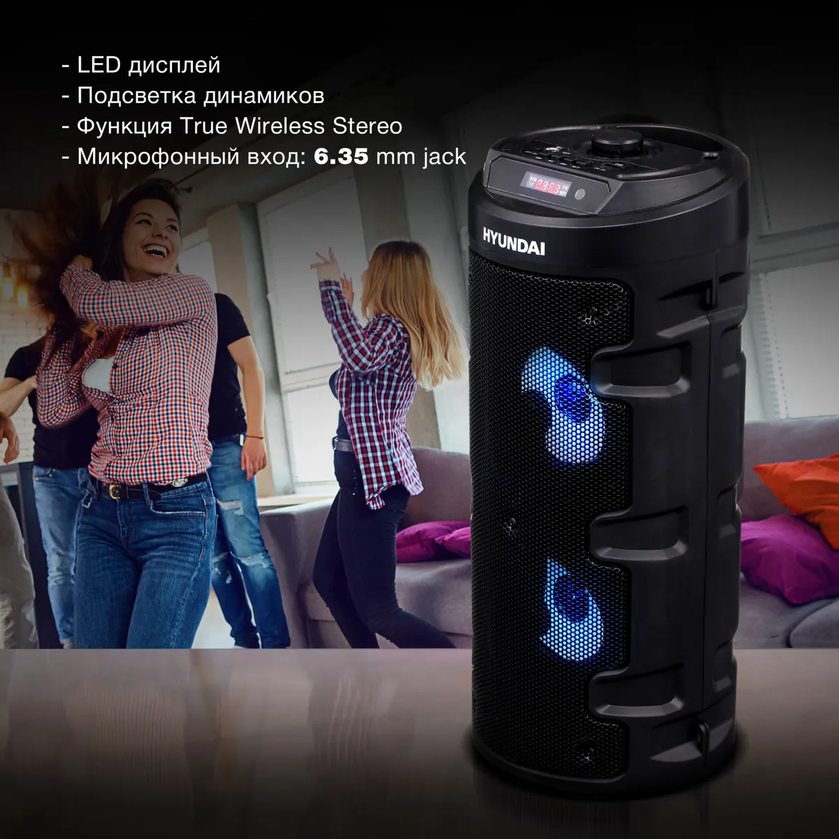 LED дисплей, подсветка динамиков, поддержка TF карты до 32GB, Bluetooth 5.0, встроенный аккумулятор 1200mAh -