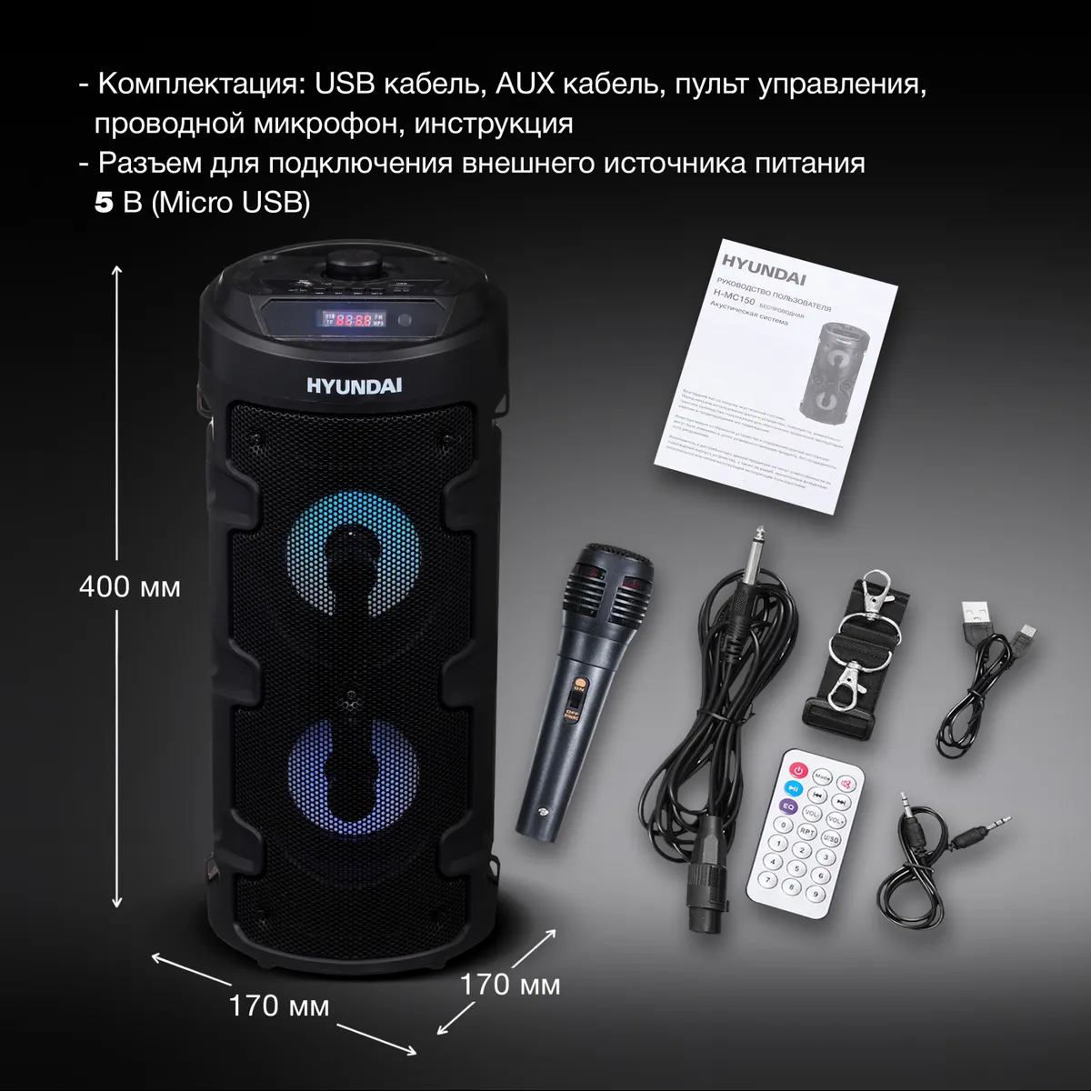 Минисистема Hyundai H-MC160 черный 50Вт FM USB BT SD/MMC | ЕАЭС RU С-VG.НА96.В.02600/22 | 27.11.2022 | 26.11.2027 |