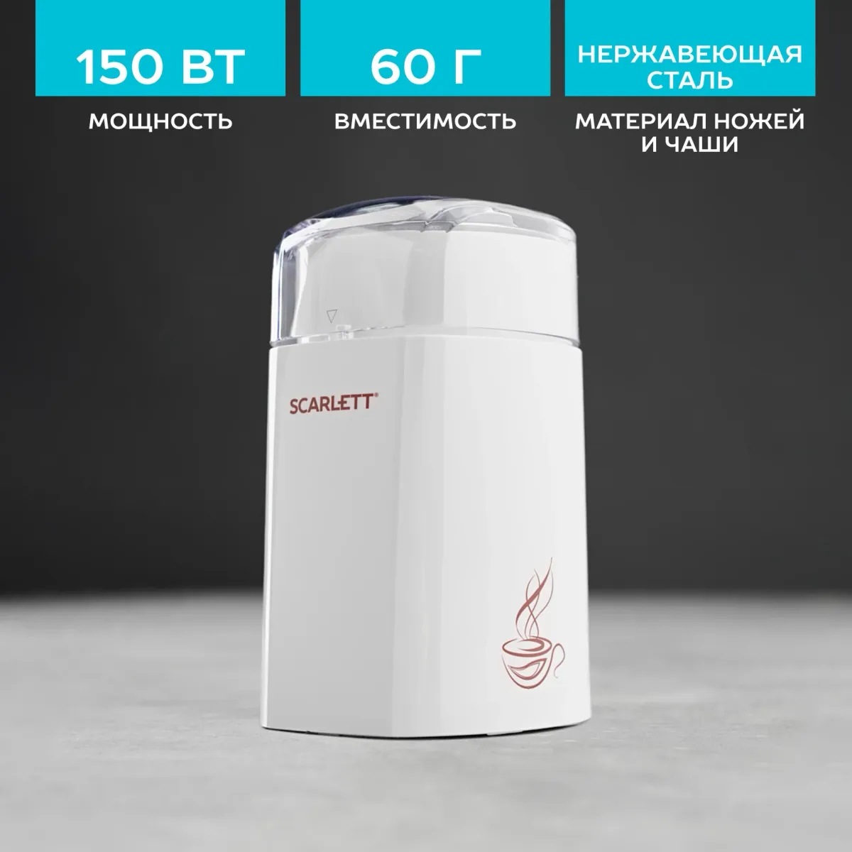 Кофемолка Scarlett SC-CG44506 150Вт сист.помол.:ротац.нож вместим.:60гр белый (SC-CG44506)