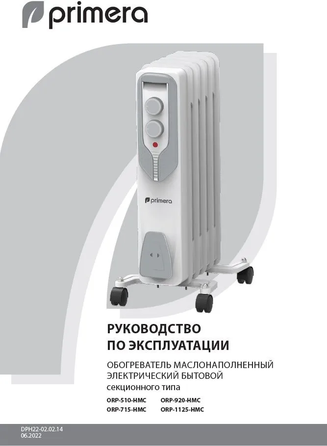 Радиатор масляный Primera ORP-510-HMC 1000Вт белый