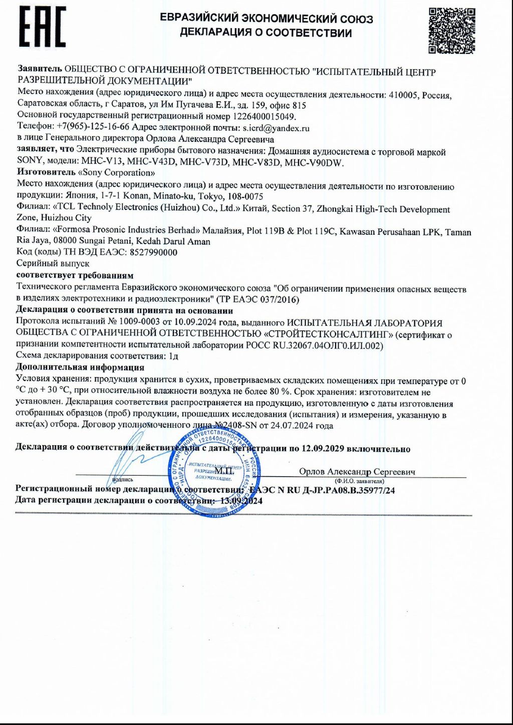 ЕАЭС N RU Д-JP.РА08.В.35977/24 | 12.09.2024 | 11.09.2029 |