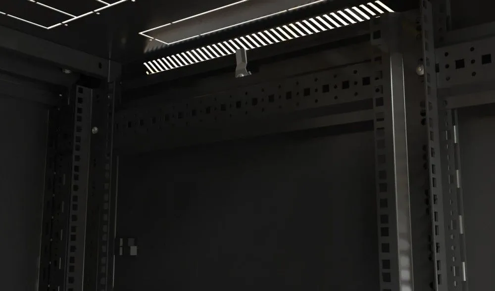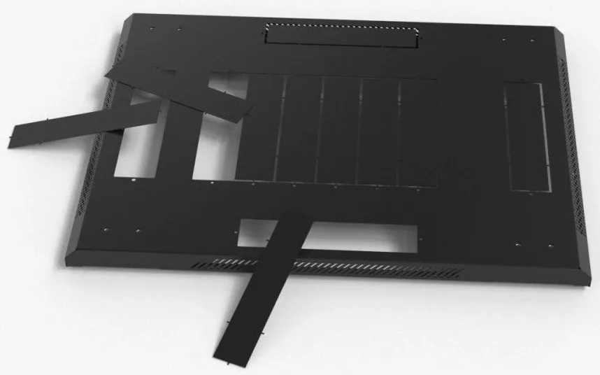 Холоднокатаная сталь SPCC. Толщина стальных компонентов: рама каркаса, верхняя, нижняя и боковые панели, передняя и задняя двери 1,2 мм; поперечный монтажный профиль 1,5 мм; 19 монтажные профили 2,0 мм