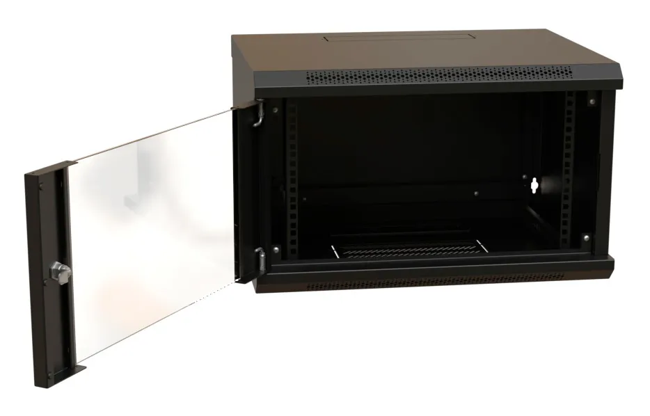 Шкаф коммутационный WRline (WR-TW-0966-GP-RAL9004) настенный 9U 600x600мм пер.дв.стекл 2 бок.пан. направл.под винты (WR-TW-0966-GP-RAL9004)