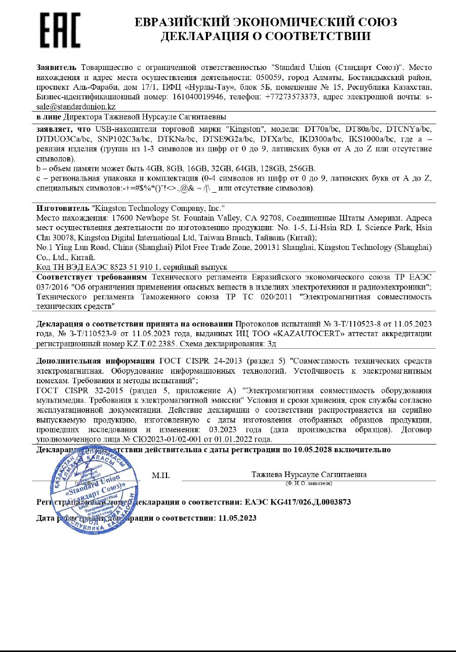 ЕАЭСД KG US Д.KG417/026.Д.0003873 | 10.05.2023 | 09.05.2028 |