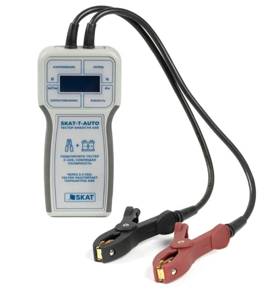 Автоматический тестер ёмкости аккумуляторных батарей SKAT-T-Auto предназначен для оперативной оценки технического состояния и остаточной ёмкости свинцово-кислотных АКБ с номинальным напряжением 12 В и номинальной ёмкостью 1,2-200 Ач. -