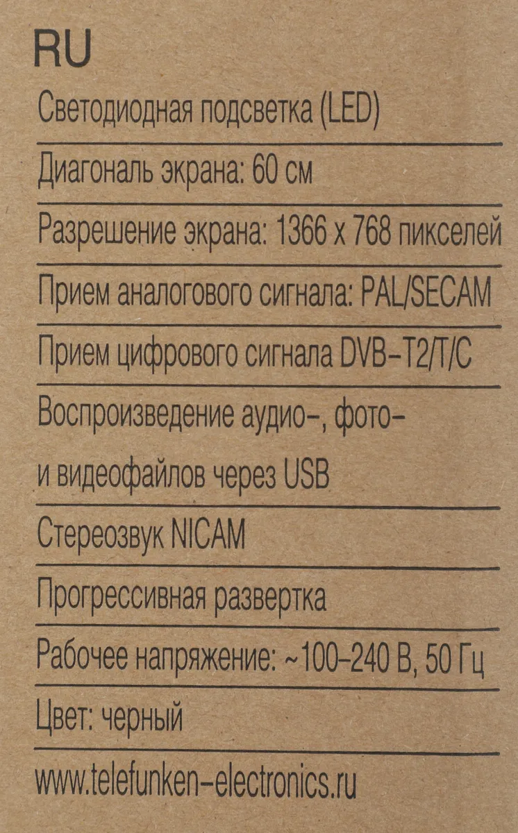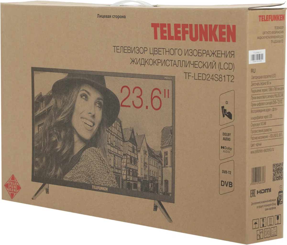 Телевизор LED Telefunken 23.6" TF-LED24S81T2 черный HD 50Hz DVB-T DVB-T2 DVB-C (RUS) (TF-LED24S81T2(ЧЕРНЫЙ))