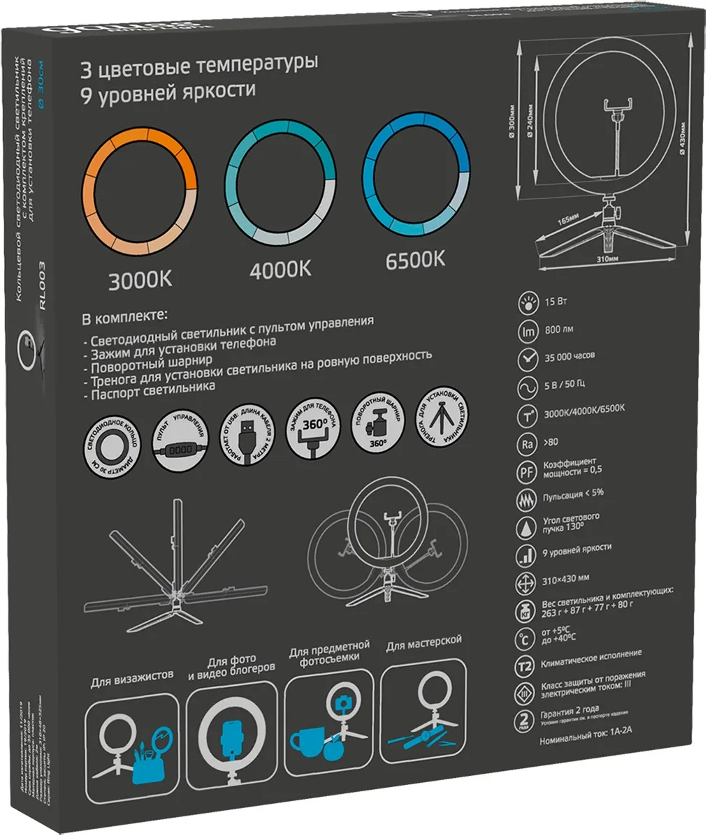 Светильник, зажим для смартфона, тренога, паспорт светильника -