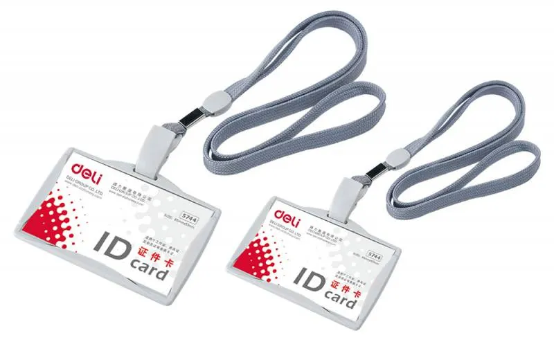 Бейдж для пропуска Deli E5744 103x78мм горизонтальный зажим вращающийся шнур:серый