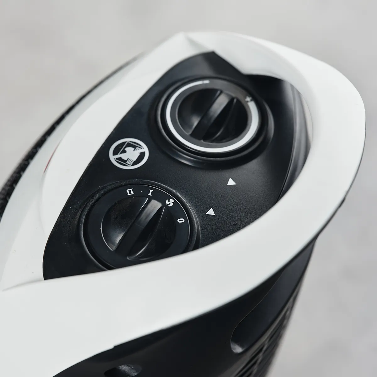 Режим обдува без обогрева. Мгновенный нагрев воздушного потока. Датчик защиты от падений. Настольное вертикальное размещение. -