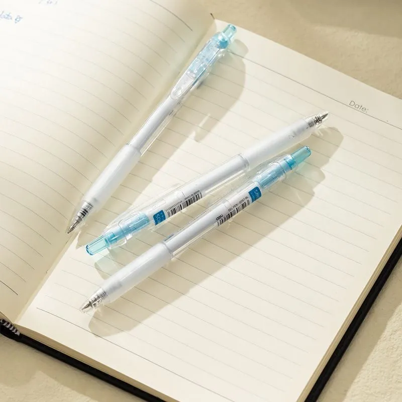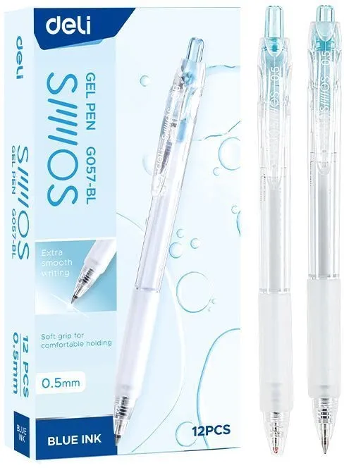 Гелевая ручка Deli EG057-BL, нажимной механизм, пулевидный наконечник 0,5 мм, мягкий грип, 12 штук в упаковке, синие чернила -