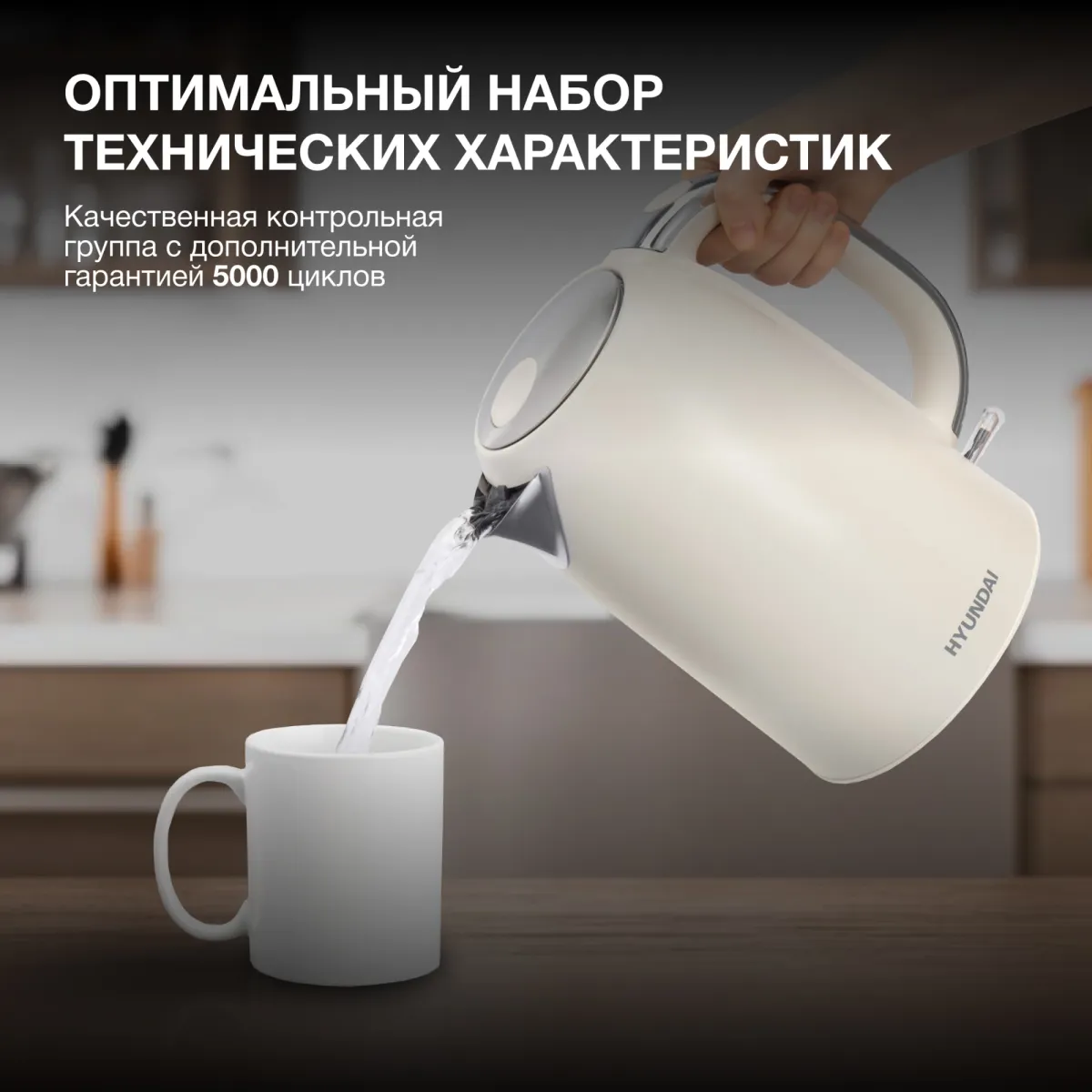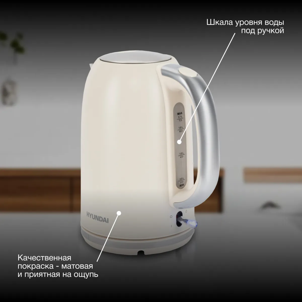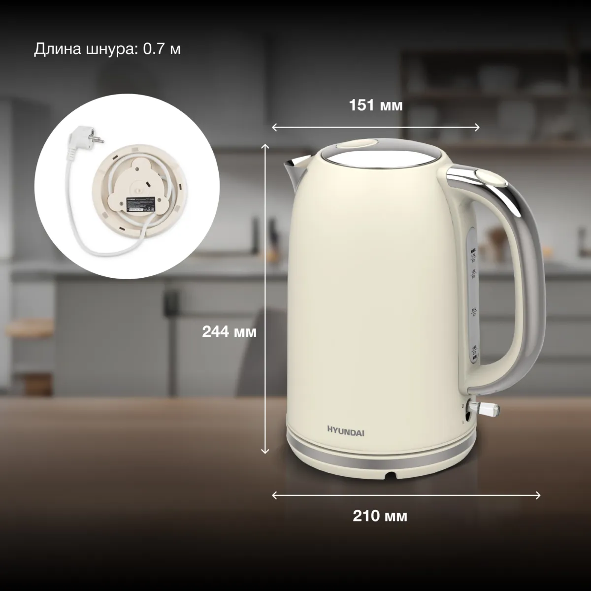 Чайник электрический Hyundai HYK-S9900 1.7л. 2200Вт молочный/серебристый корпус: (HYK-S9900)