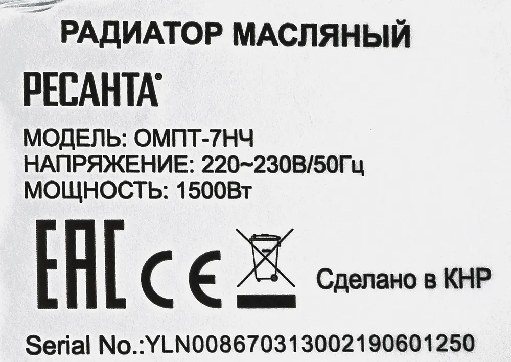 Радиатор масляный Ресанта ОМПТ-7НЧ 1500Вт черный