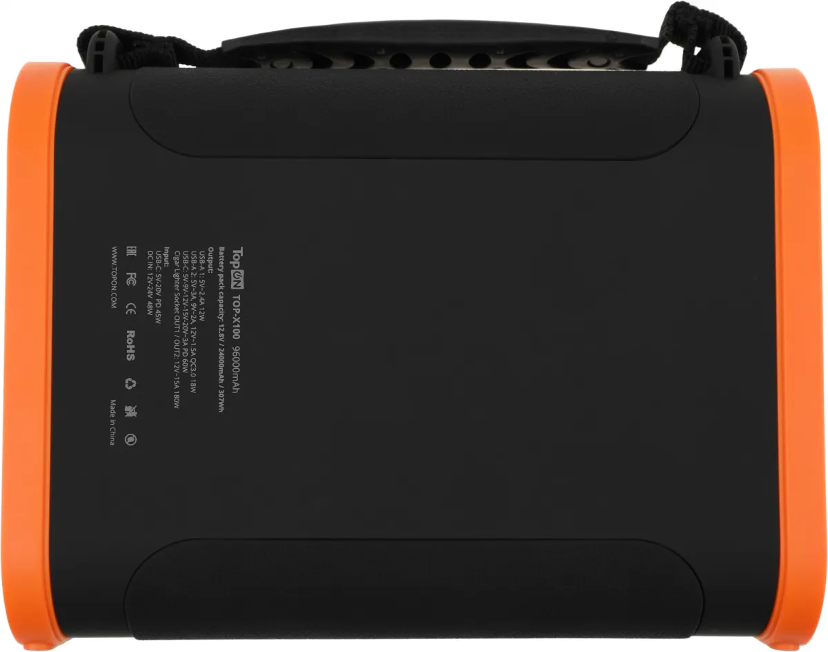 Внешний аккумулятор TopON 96000mAh Type-C PD 60W, USB1 QC3.0, USB2 12W, 2 авторозетки 180W, фонарь, защита от брызг. Прорезиненный корпус.Система коррекции выходного напряжения и силы тока.Работает при отрицательных температурах.Возможность заряжать неск -