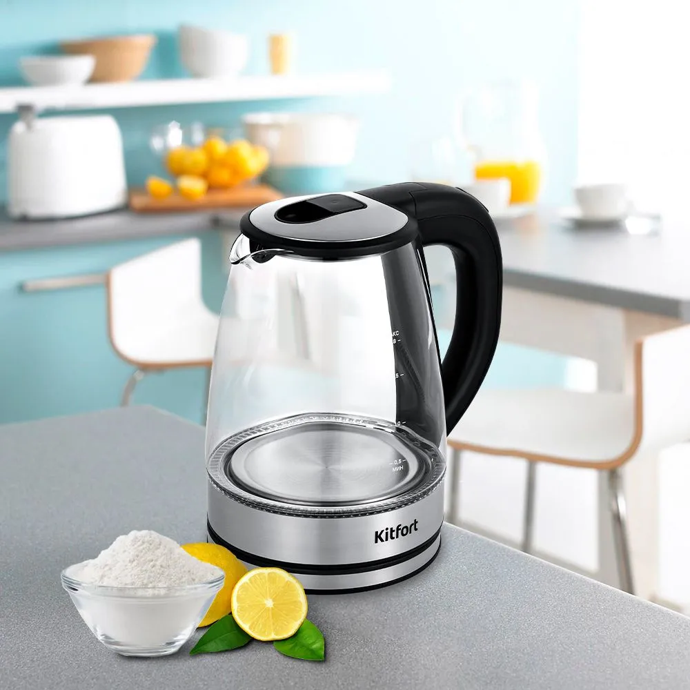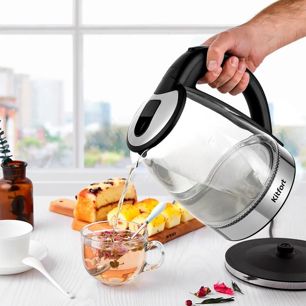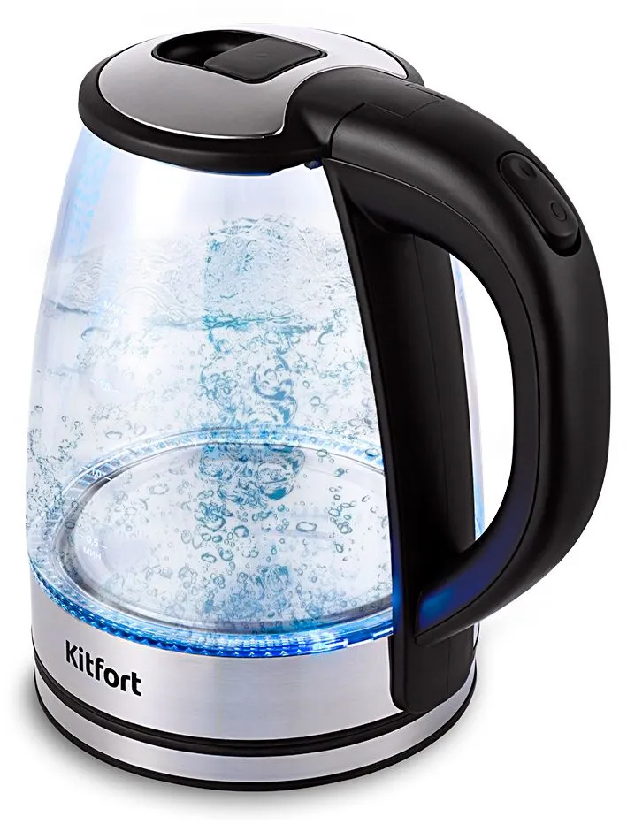 Чайник электрический Kitfort КТ-6168 1.8л. 2200Вт черный глянец/нержавеющая сталь корпус: стекло/металл/пластик
