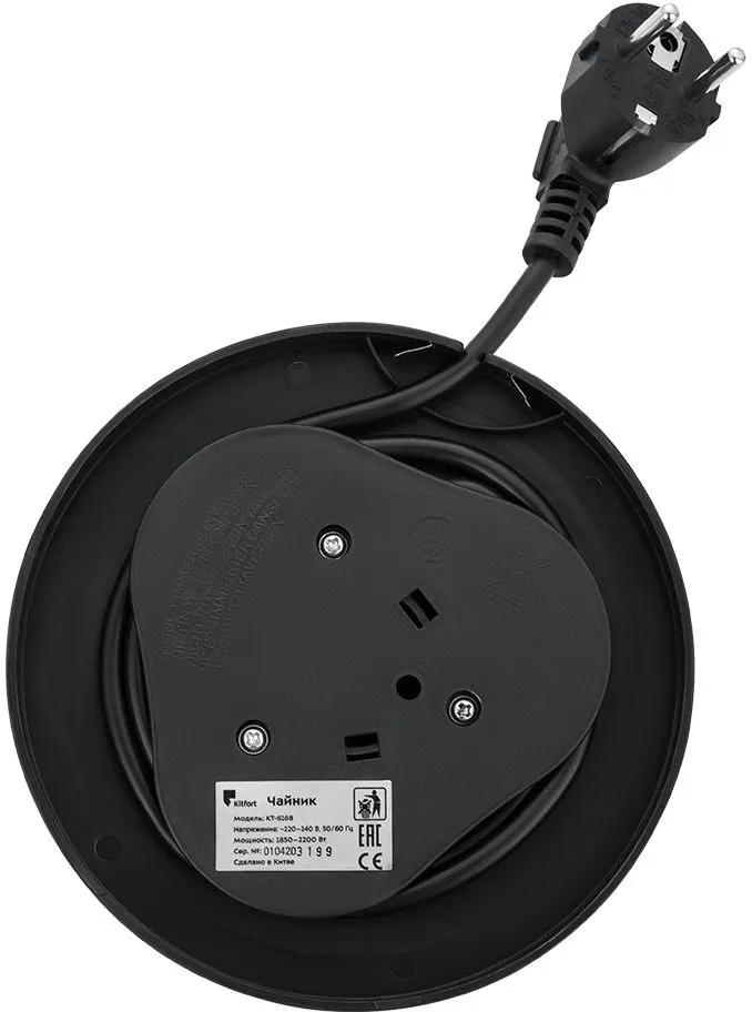 Чайник электрический Kitfort КТ-6168 1.8л. 2200Вт черный глянец/нержавеющая сталь корпус: стекло/металл/пластик (КТ-6168)