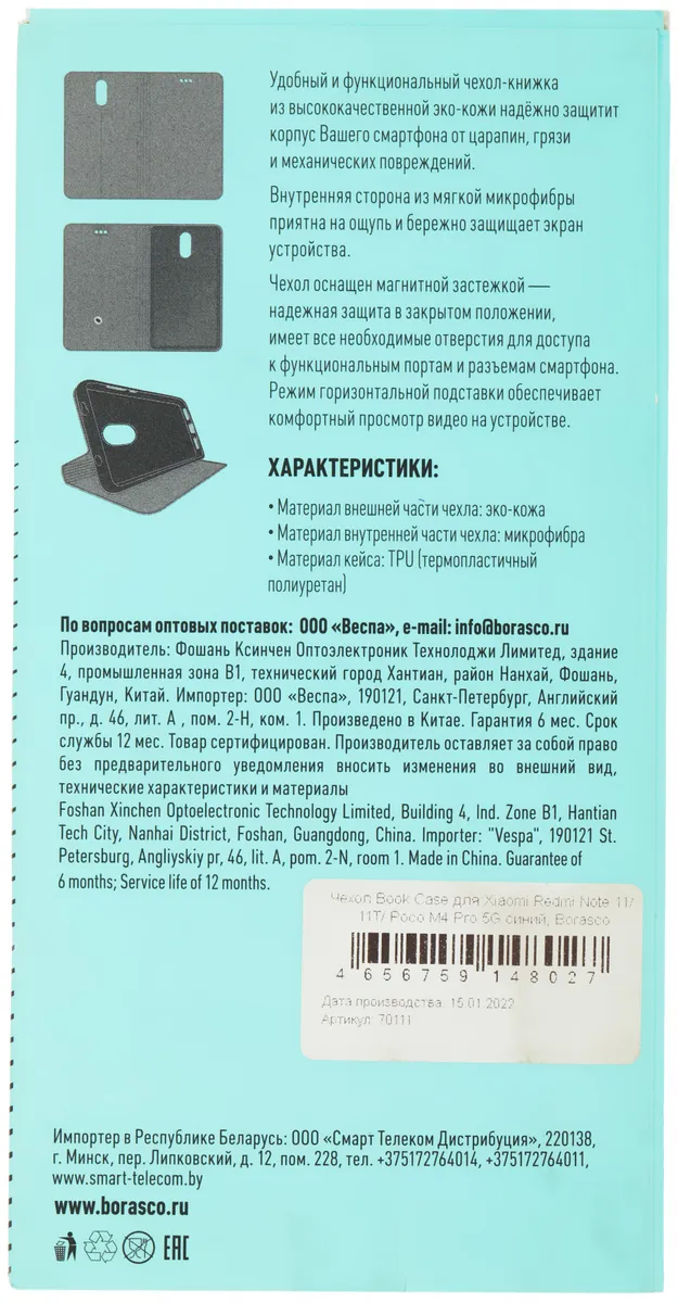 Чехол (флип-кейс) BoraSCO для Xiaomi Poco M4 Pro 5G Book Case синий (70111)