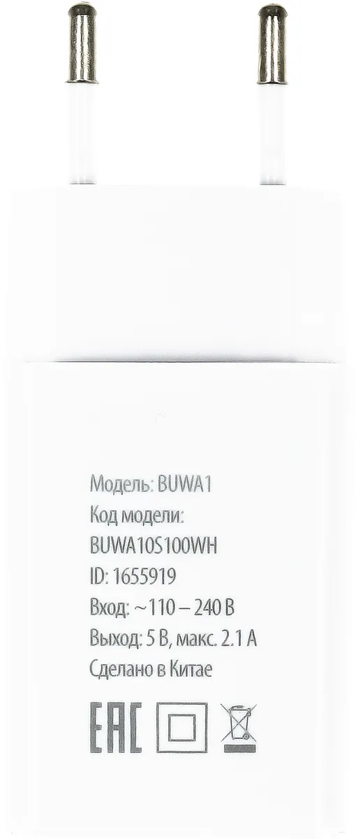 | Сетевое зар./устр. Buro BUWA1 10.5W 2.1A USB-A универсальное белый (BUWA10S100WH) | ЕАЭС RU С-VG.АЖ40.В.01449/22 | 23.02.2022 | 22.02.2027 |