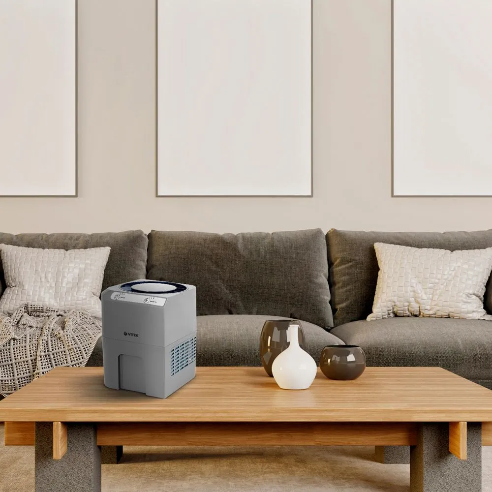 Уникальный прибор — мойка воздуха VITEK VT-8556 — способен одновременно очищать и увлажнять воздух в помещении площадью до 25 м2. Объём резервуара для воды — 2 л. Устройство имеет два мощных HEPA-фильтра, которые нейтрализуют частички пыли, аллергены и бо -
