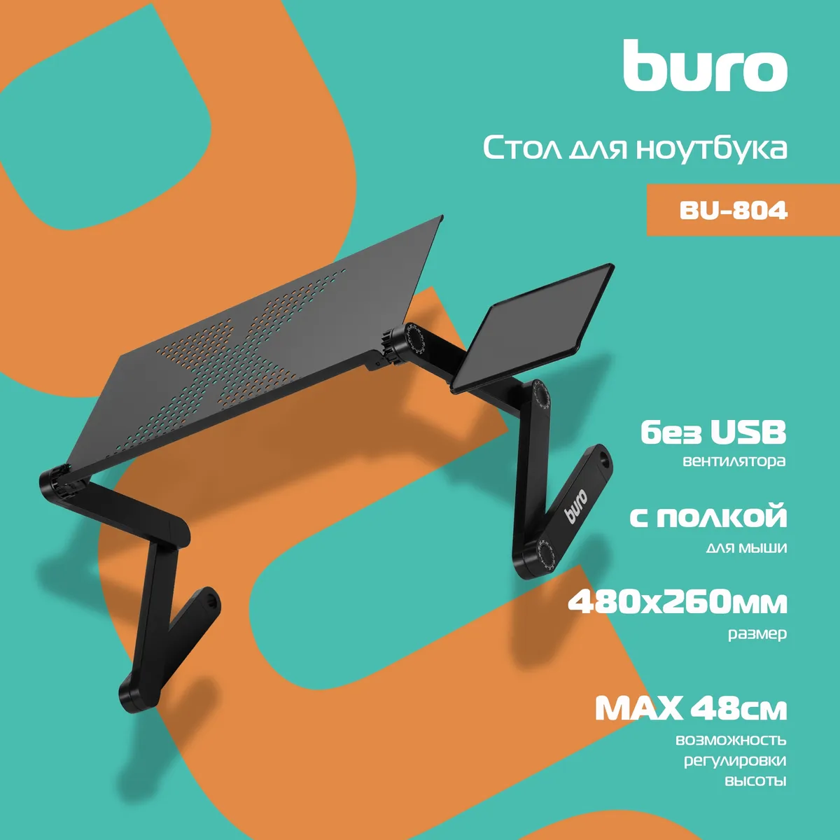 Стол для ноутбука Buro BU-804 столешница металл черный (BU-804)