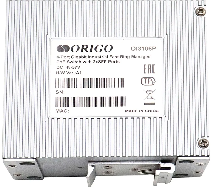Коммутатор ORIGO Managed L2 Industrial Fast Ring Switch 4x1000Base-T PoE, 2x1000Base-X SFP, (OI3106P/60W/A1A)
