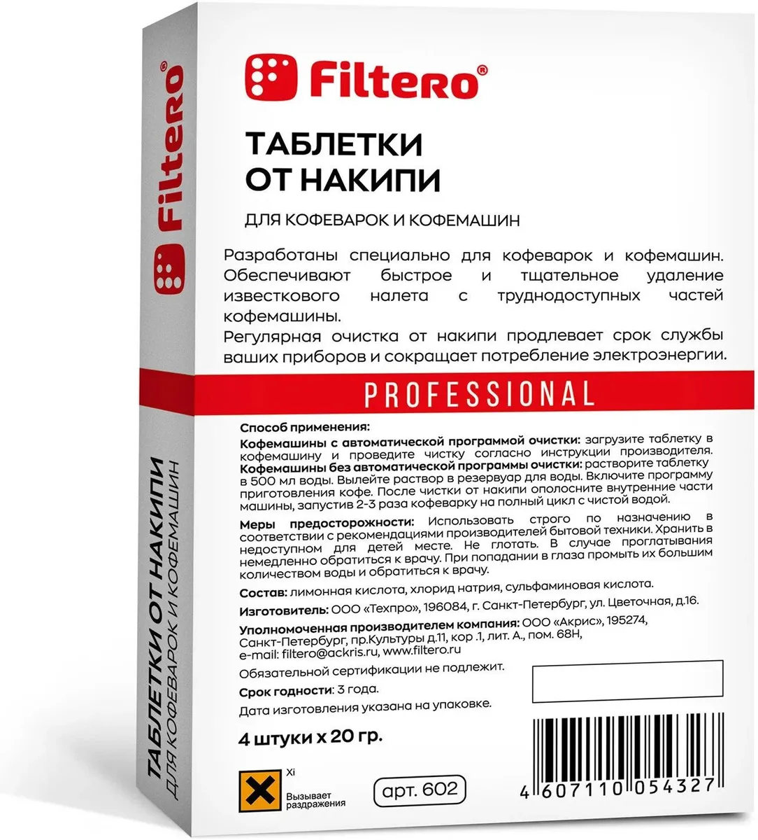 Очищающие таблетки для кофеварок/кофемашин Filtero Арт.602 (упак.:4шт) (АРТ.602)