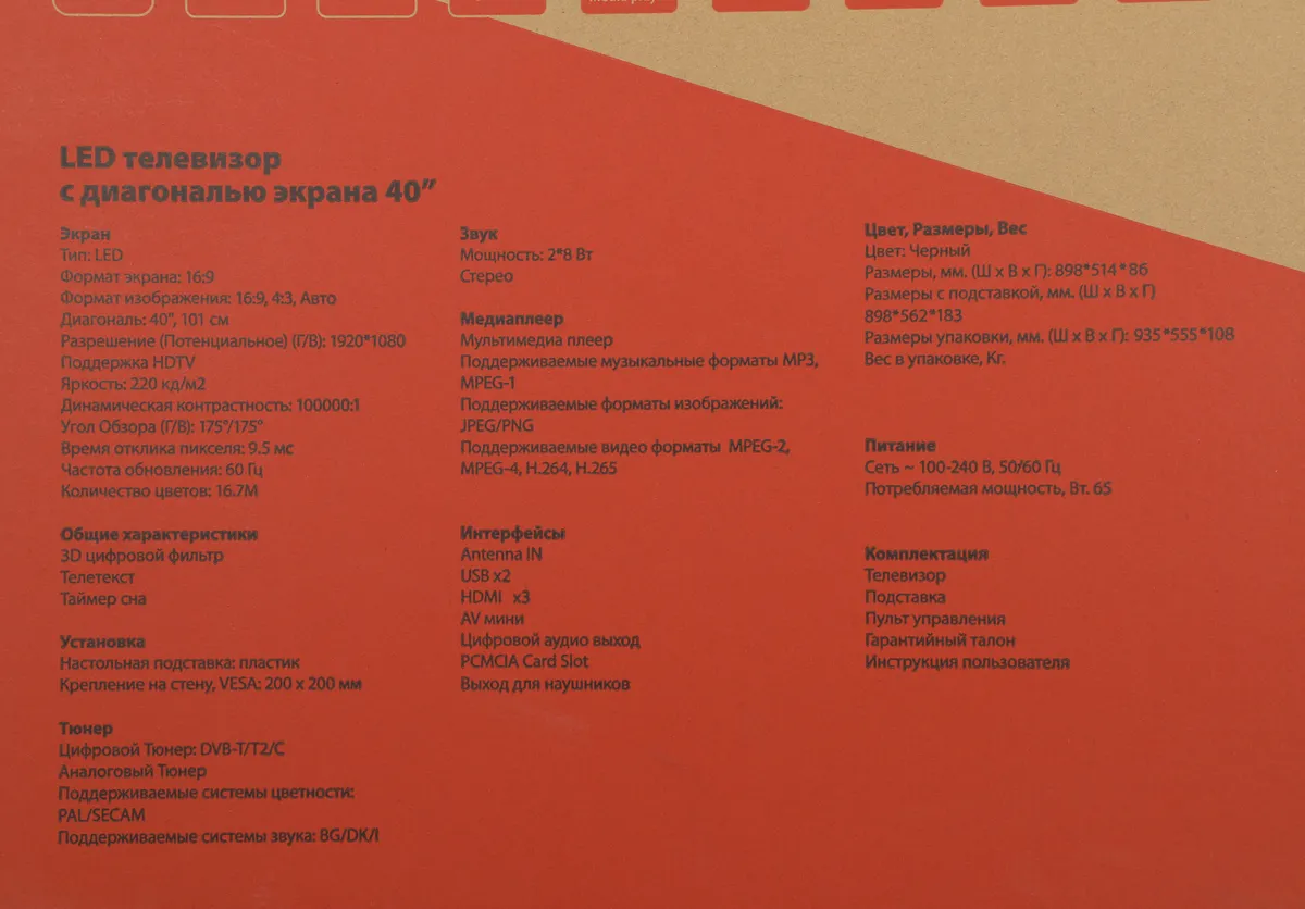 Телевизор LED Supra 40" STV-LC40LT00100F Frameless черный FULL HD 60Hz DVB-T DVB-T2 DVB-C USB (RUS)