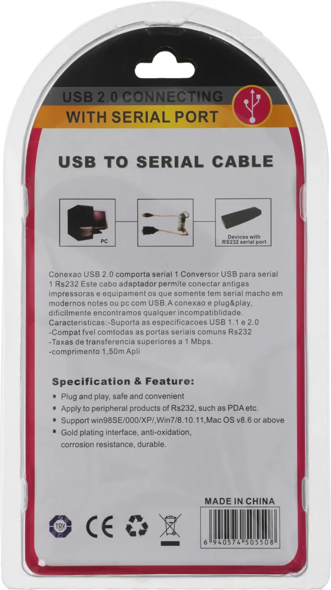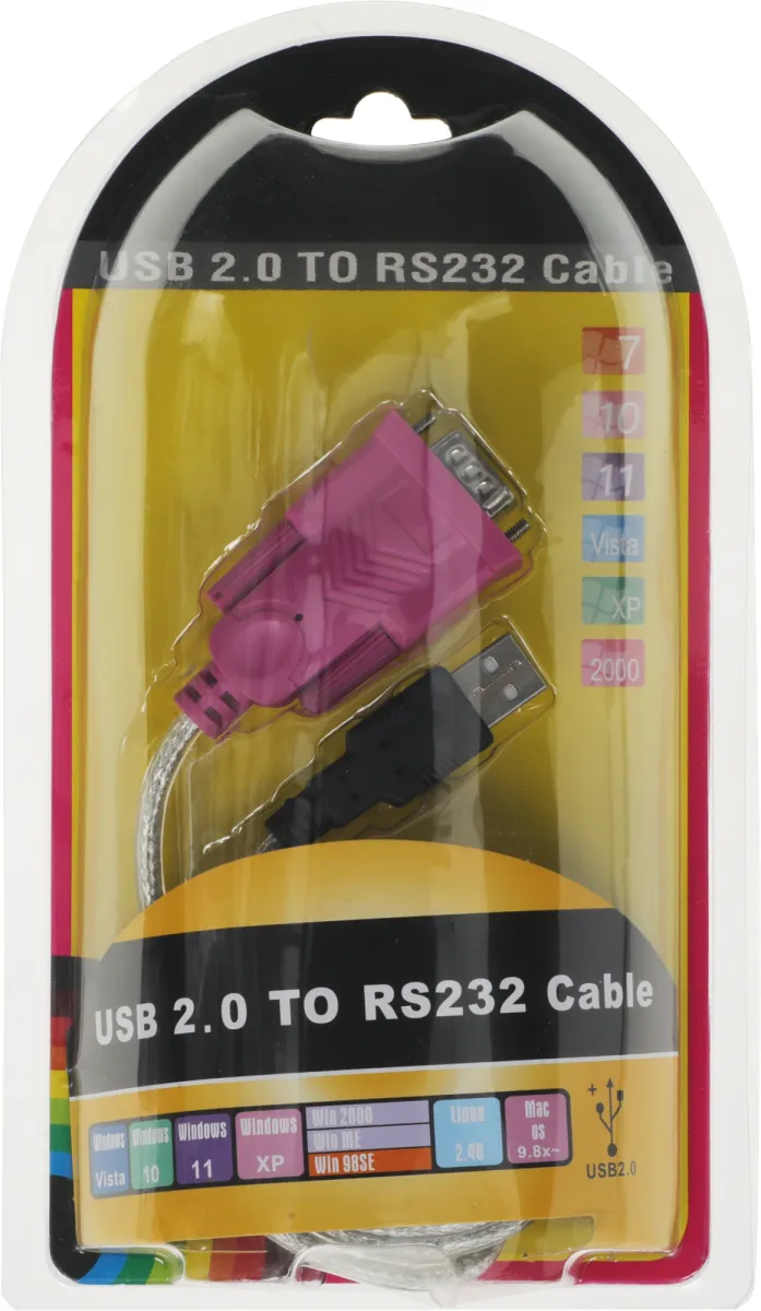 Кабель-переходник служащий для подключения принтеров модемов или промышленного оборудования с портом COM (RS-232) к персональным компьютерам и ноутбукам, снабженным портом USB.