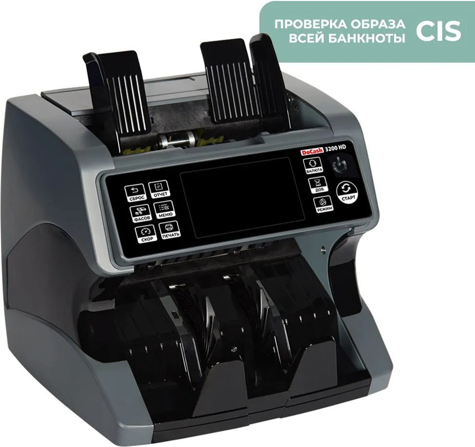 Мультивалютный с большим сенсорным дисплеем - 4,5 дюйма; CIS-сканер (проверка видимого образа 100% площади банкнот); Проверка подлинности по 4 МЧП; 3-х канальный датчик магнита-лучшая проверка магнита; Высокий эксплуатационный ресурс; Обработка большого -
