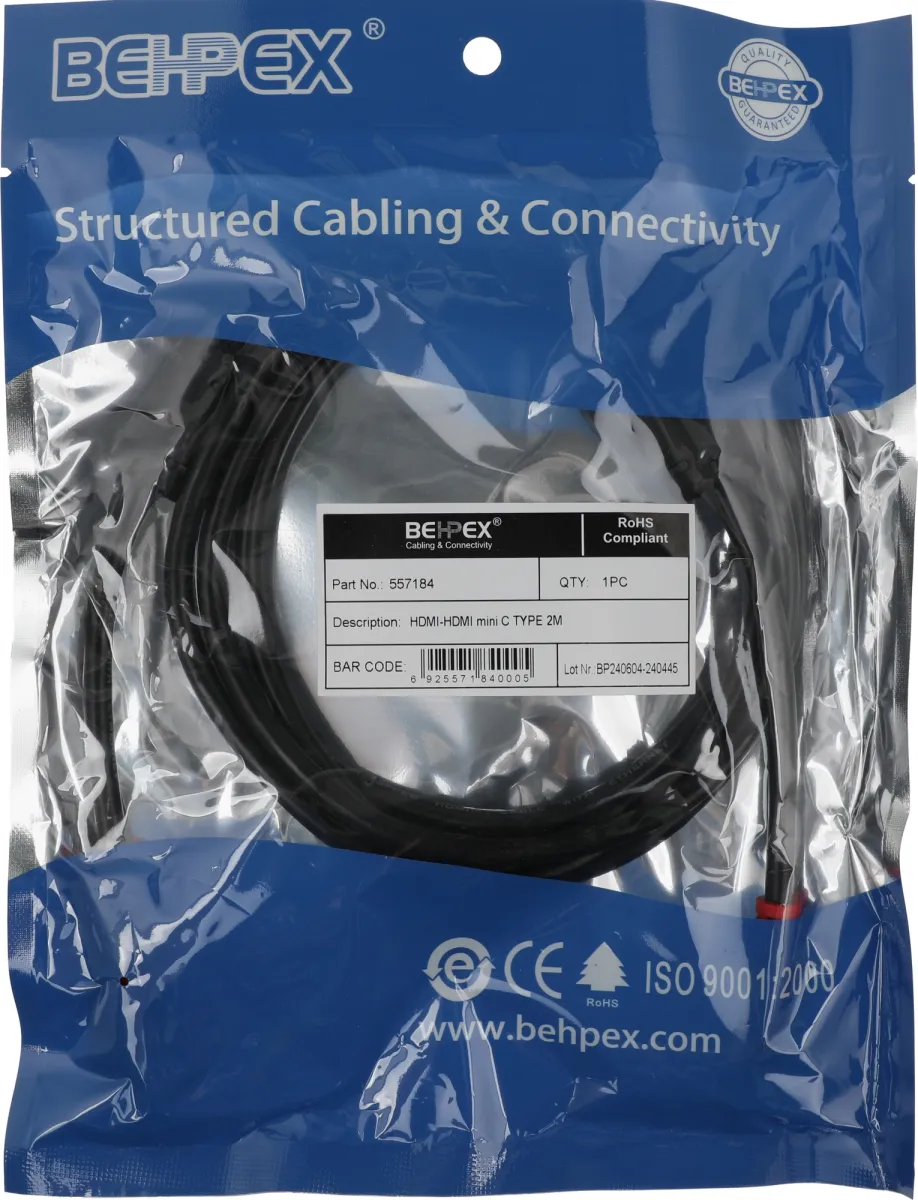 Mini-HDMI кабель для подключений ноутбуков, ультрабуков и планшетов к мониторам, телевизорам и проектора. Ферритовые кольца улучшают качество передачи данных. Длина кабеля 2 метра. -