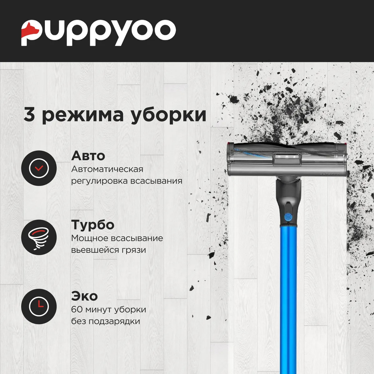 Количество режимов уборки: 3, супер, авто, эко. 6-уровневая система фильтрации; технология двойного выхода воздуха; антибактериальный фильтр. Регулятор мощности на корпусе; моющиеся щетки и фильтры. -
