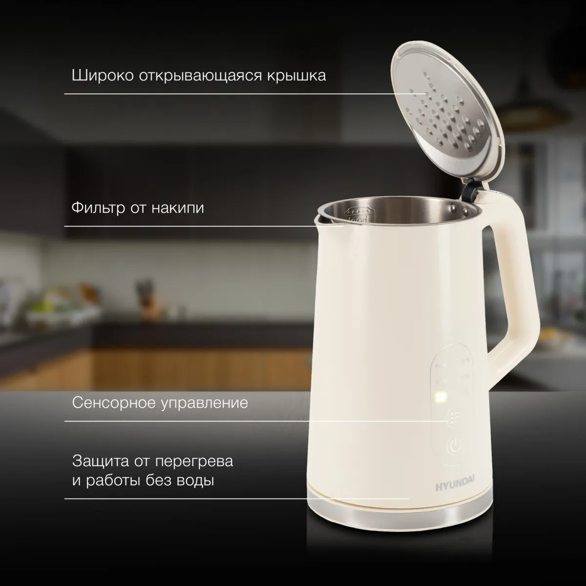 Чайник электрический Hyundai HYK-S3605 1.7л. 2200Вт кремовый корпус: (HYK-S3605)