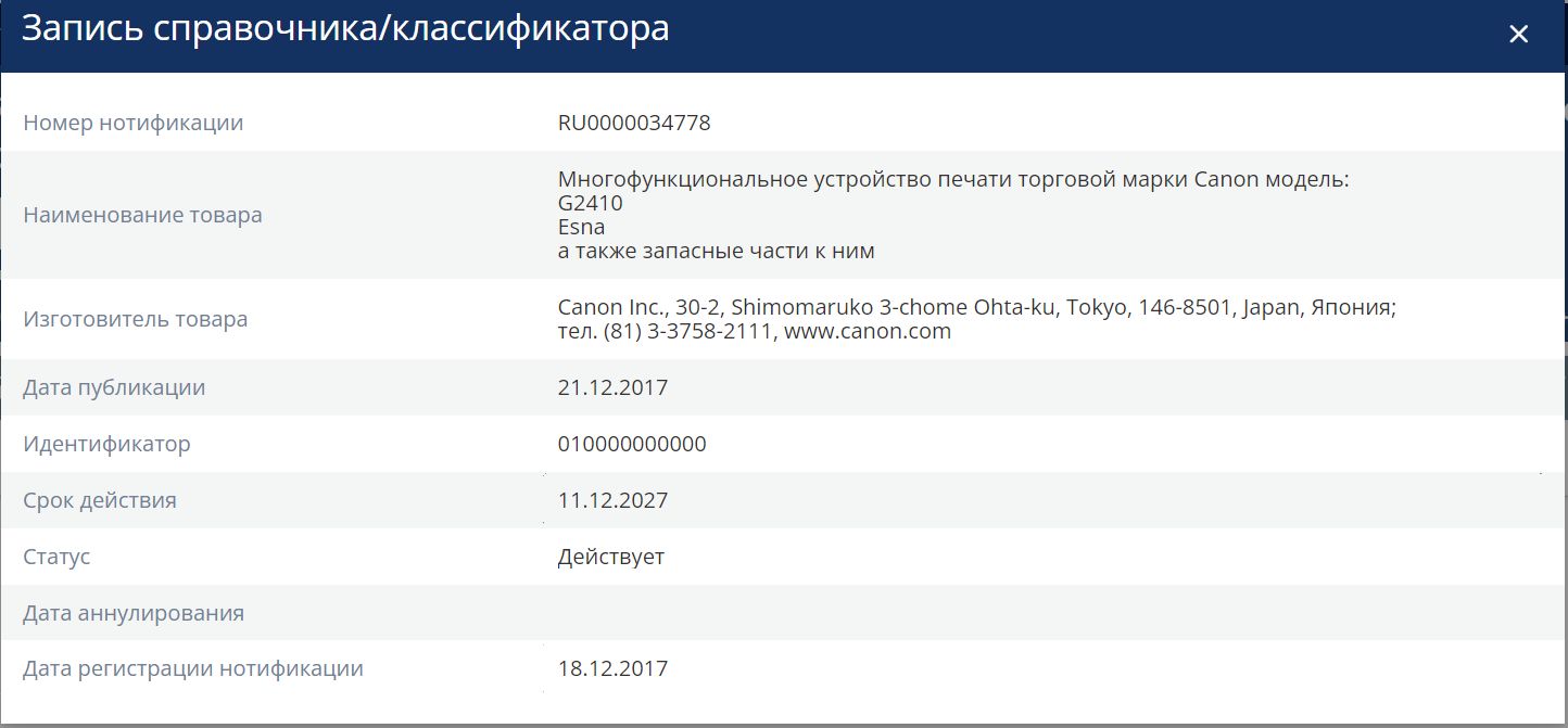 | МФУ струйный Canon Pixma G2410 (2313C009) A4 черный | НИП RU .ФСБ.0000034778 | 17.12.2017 | 10.12.2027 |