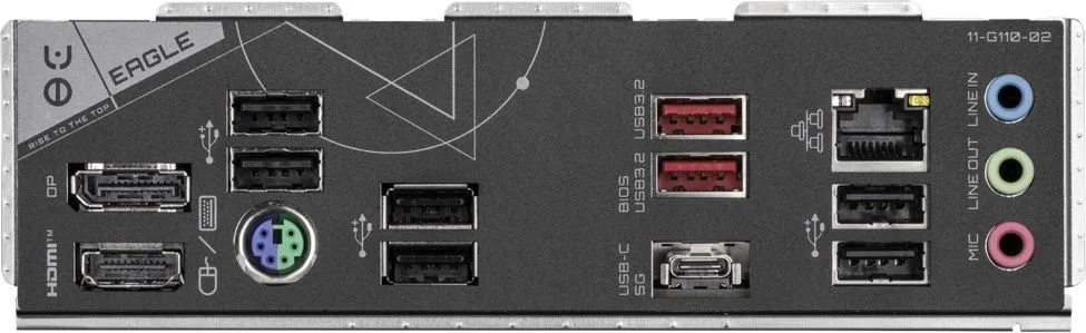 DisplayPort, HDMI, PS/2, 2xSMA, USB 3.2 Gen 1 Type-C, 2xUSB 3.2 Gen 2 Type-A, 6xUSB 2.0/1.1, LAN RJ-45, 3 разъема аудиоподсистемы -