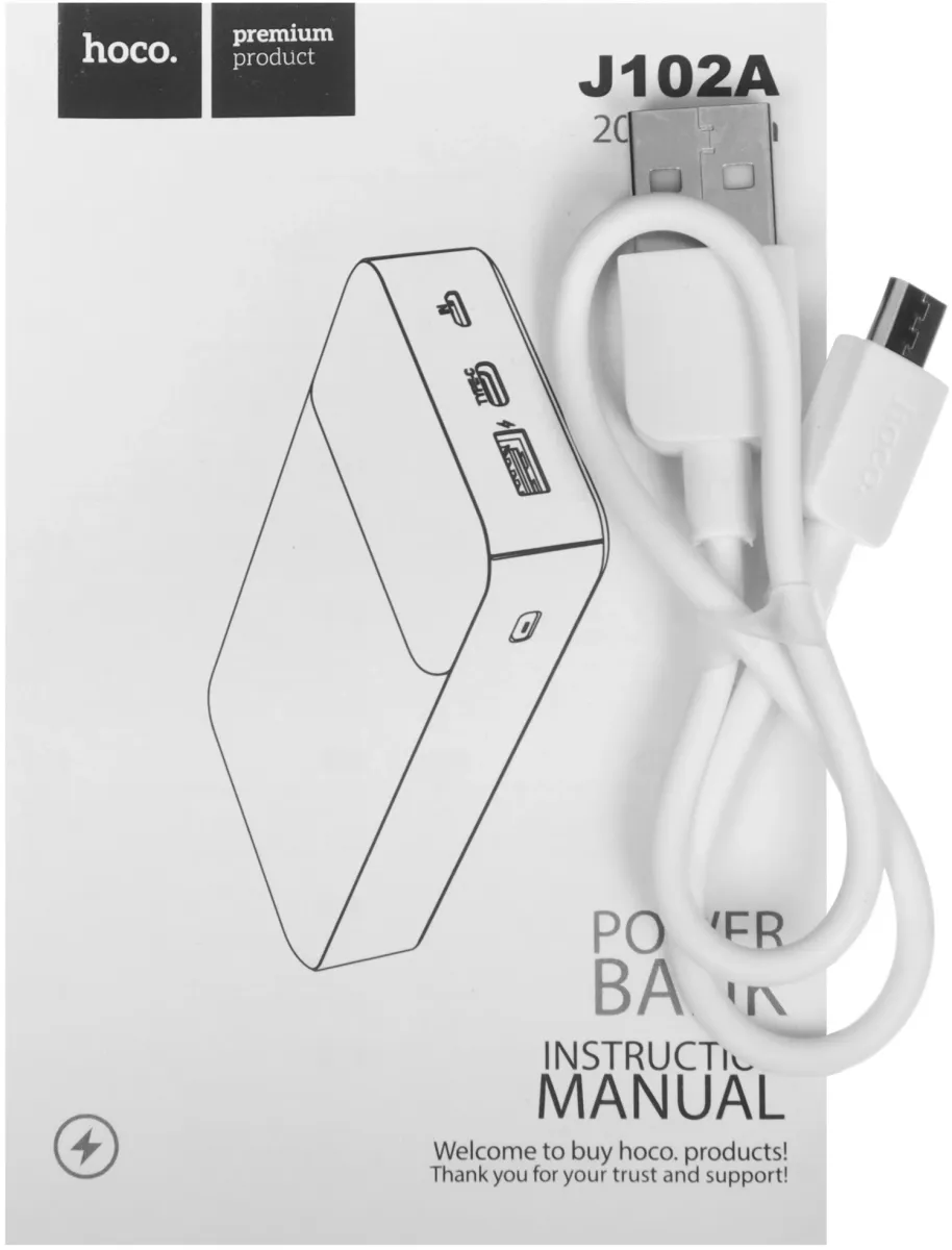 Описание Внешний аккумулятор HOCO J102A Cool Figure 20000mAh, 1xUSB, 1xUSB-C, 3А, QC3.0, PD20W, LED, Li-Pol (белый)