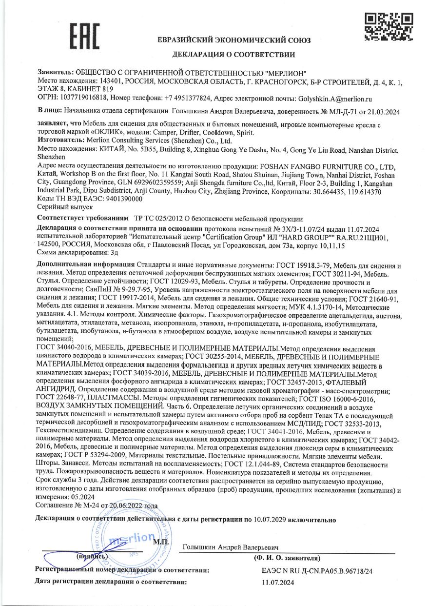 ЕАЭС N RU Д-CN.РА05.В.96718/24 | 10.07.2024 | 09.07.2029 |