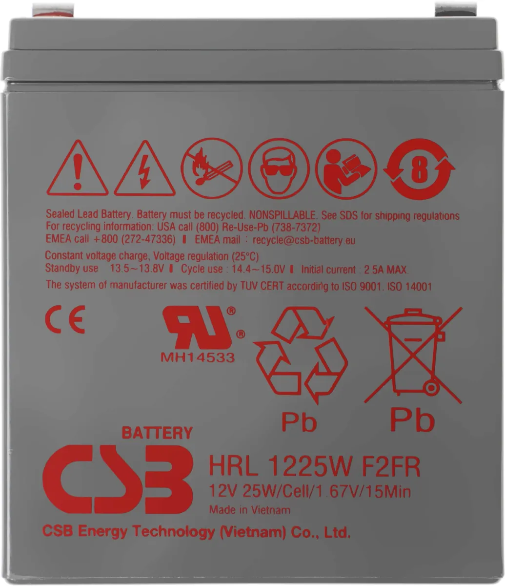 Аккумулятор CSB HRL 1225W F2 FR с высокой энергоемкостью. Особенная кристаллическая решетка электродов позволила увеличить на 20% отдаваемую мощность по сравнению с батареями других серий. Она разработана для эксплуатации в режиме высоких токов разряда пр -