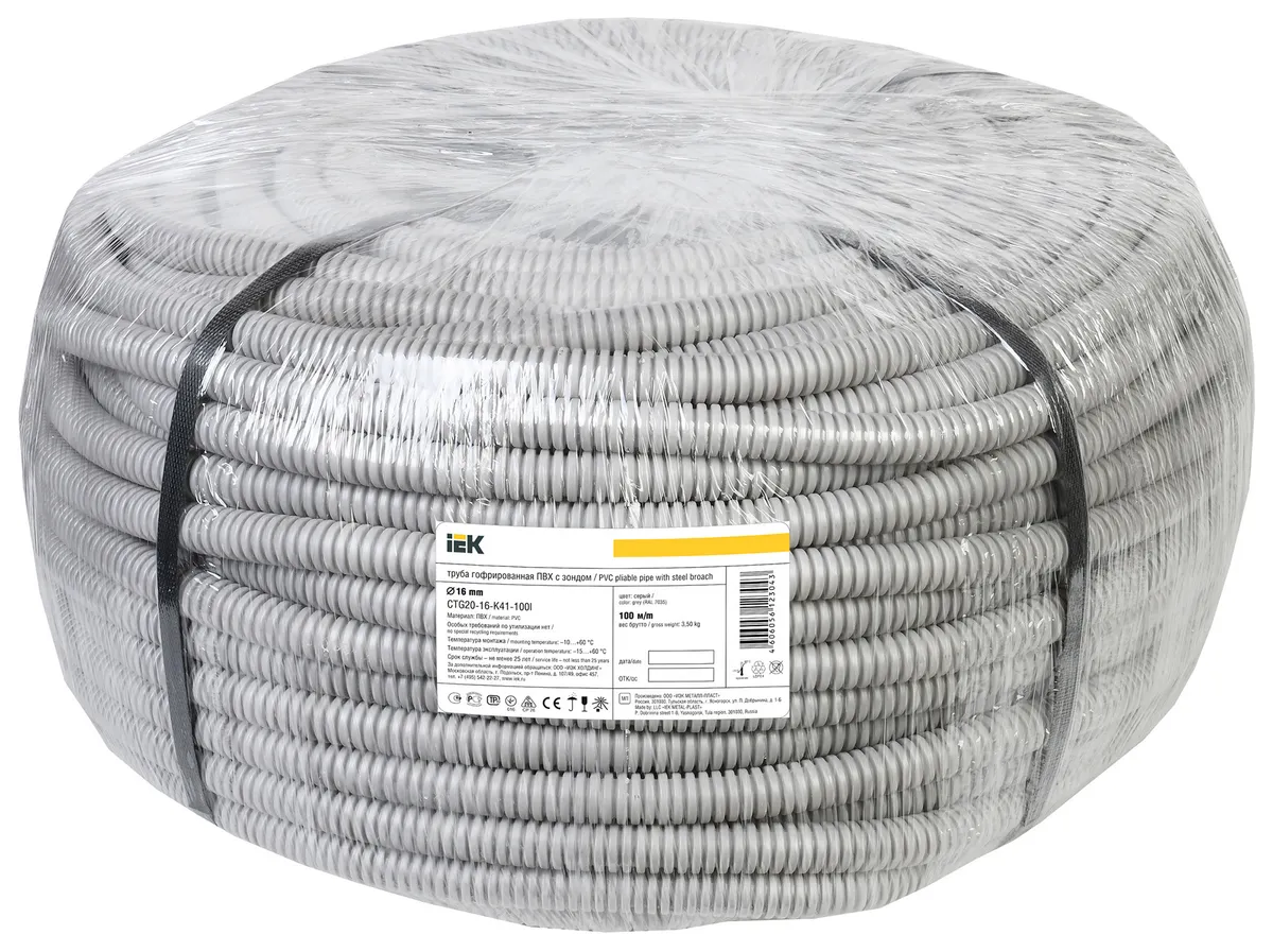 Труба гофр. гибкая ПВХ IEK CTG20-16-K41-100I внеш.D=16мм с (CTG20-16-K41-100I)