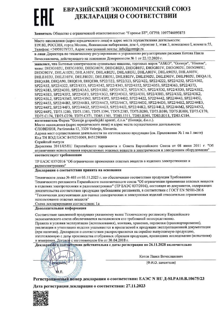 ЕАЭС N RU Д-SI.РА10.В.10675/23 | 26.11.2023 | 25.11.2028 |