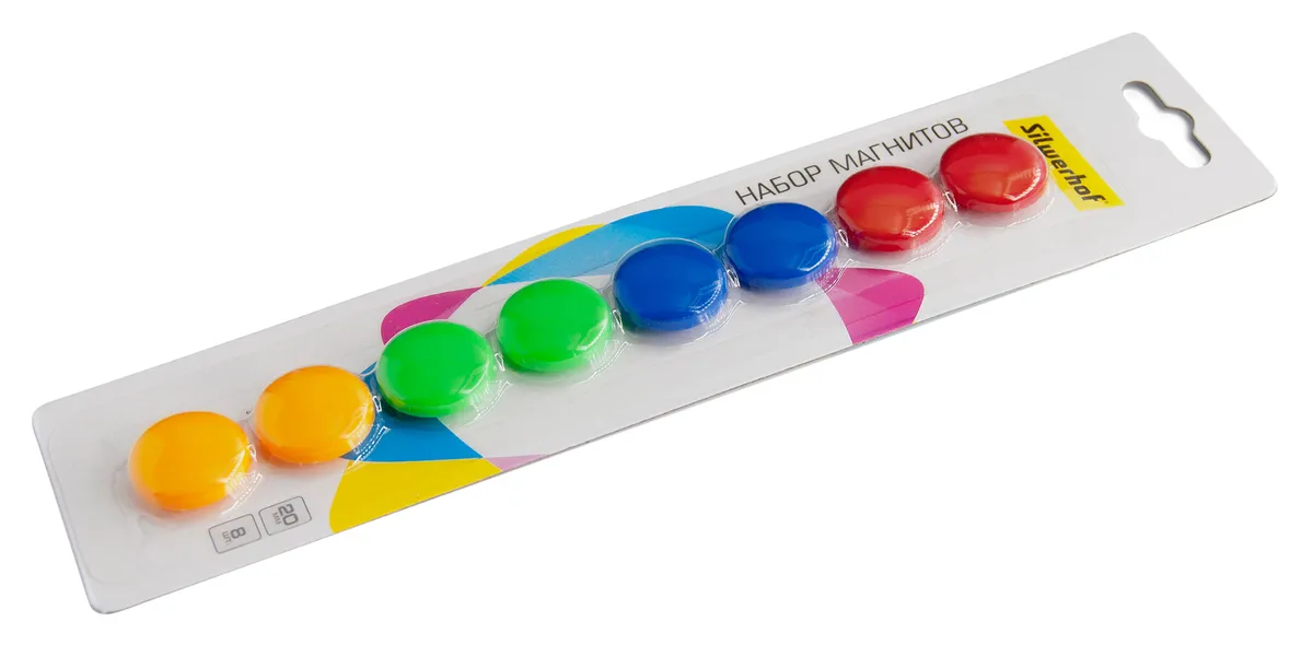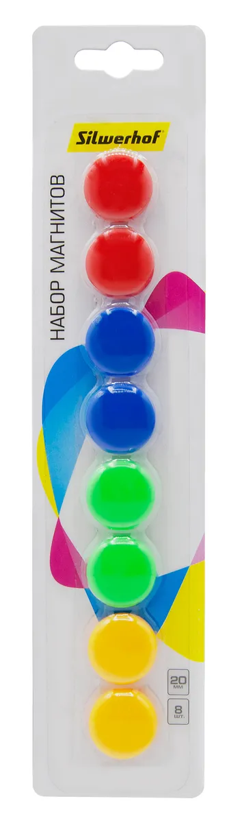 Магнит Silwerhof Classic для досок пластик ассорти d20мм круглый (упак.:8шт) (ML1396924)