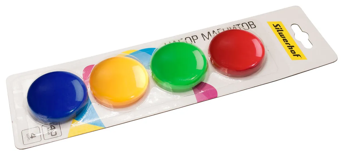 Магнит Silwerhof Classic для досок пластик ассорти d40мм круглый (упак.:4шт) (ML1734746)